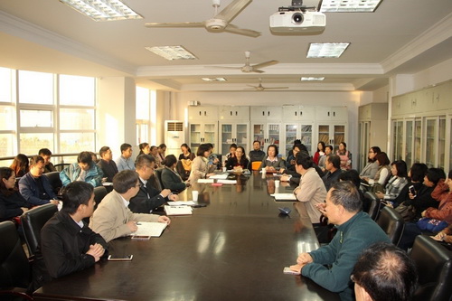 孙钰指出,多年来,学院在学科和专业建设、人才培养和社会服务四个方面都突出了差异化优势,为地方经济服务的标志性成果多、学科和科研的建设平台多、发展特色显著。当前,要在学校党委的统一领导下,进一步统一思想、凝聚力量,坚持重点突破与整体推进相结合,认真分解博士点建设验收的各项指标要求,在人才引进、队伍建设、高水平成果、兼职博导规模、国内外学术合作与交流等方面着力加强规划与推动落实,通过博士点建设与验收工作来带动学院各项工作实现突破性发展。