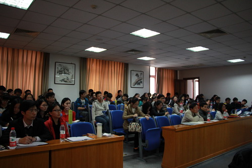 此次学术论坛分上下两场。上半场主旨发言人有: 王继平教授《追溯型忠诚折扣意味着更低价格吗?》,吕明元教授《产业结构生态化演进研究》,周桂荣教授《 WTO-SPS 特别贸易关注对我国食品安全标准体系构建的影响》,王炳才教授《服务业创新与制造业创新比较研究》,李海伟博士《异质性与“金砖国家”的混合型直接投资问题研究》。 五位老师清晰明了、深入浅出的报告,让在场师生很快融入学术交流的氛围中。其中吕明元老师的报告内容,已在《世界经济研究》、《产经评论》等经济学期刊发表。