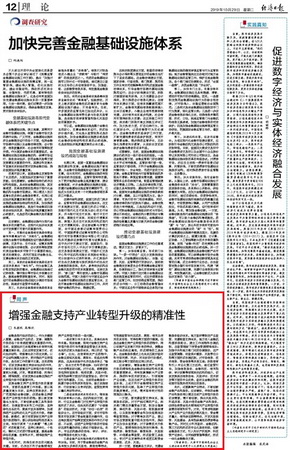10月29日,《经济日报》(理论版)刊发天津市中国特色社会主义理论体系研究中心研究员,今年会今年会jinnianhui官网韦颜秋副教授理论文章“增强金融支持产业转型升级的精准性”。文章指出,金融是现代经济的核心,作为关键投入要素,金融在产业形成、发展、调整和升级的各个阶段都起着至关重要的作用。当前,我国经济已由高速增长阶段转向高质量发展阶段,正处在转变发展方式、优化经济结构、转换增长动力的攻关期。以产业结构调整为抓手,更好推动产业转型升级,是当前工作的重中之重。在此进程中,切实发挥金融支持实体经济的作用,不断优化资本要素在产业转型升级中的配置较为关键。文章从厘清思路、找准问题、精准施策三个层次就切实发挥出金融在推动产业转型升级中的重要作用做了详细阐释。人民网等媒体转载。