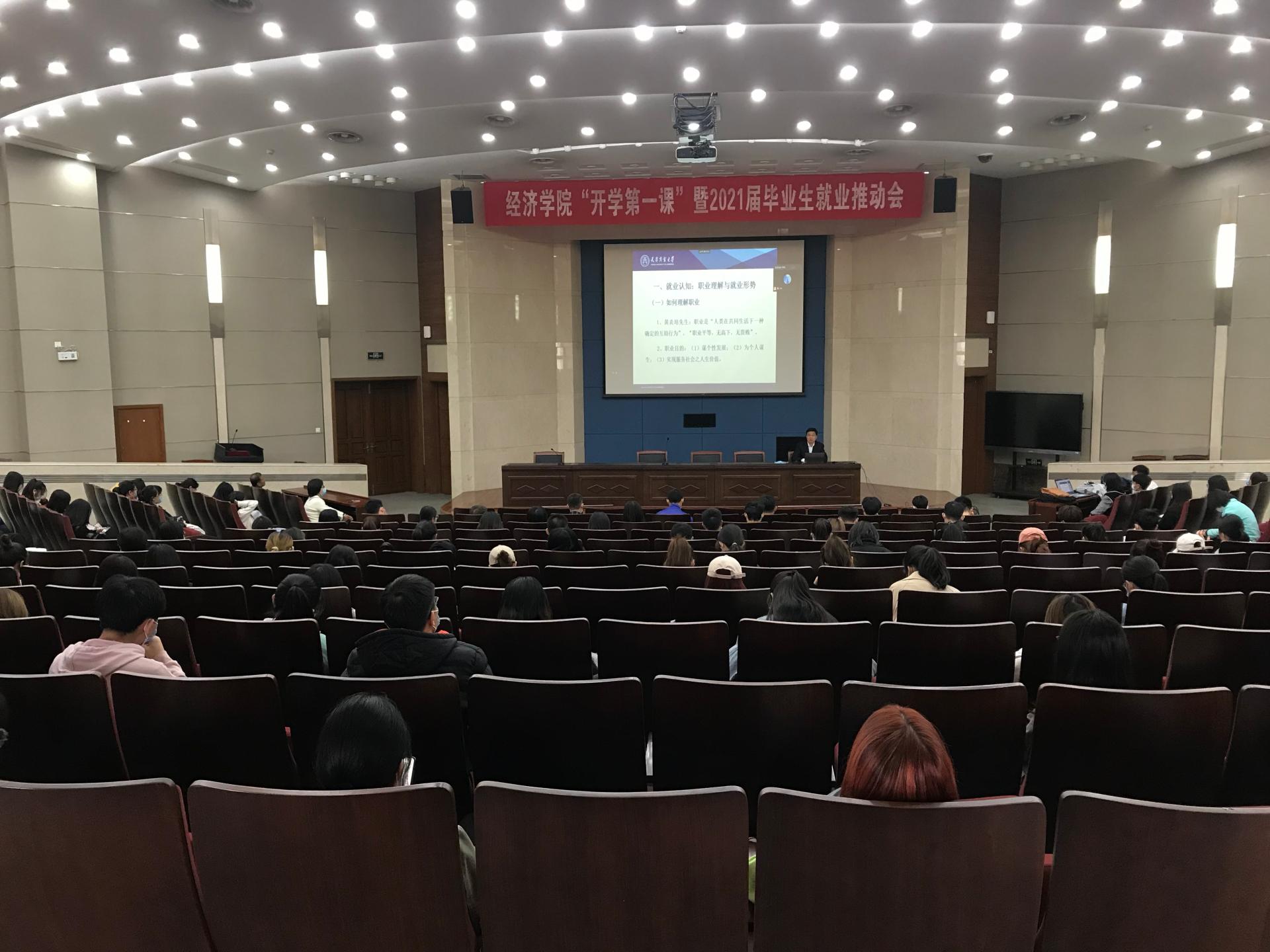 10月15日下午,今年会jinnianhui官网在图书馆三楼国际报告厅召开“开学第一课”暨2021届毕业生就业推动会。院长梁学平、教学秘书、全体毕业班辅导员、2021届全体毕业生参加会议。会议以线上线下相结合方式开展。