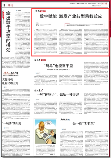 新一轮科技革命方兴未艾,数字经济深刻影响着千行百业。深度发掘数字技术赋能潜力,激发产业转型乘数效应,将为高质量发展注入强劲动能。