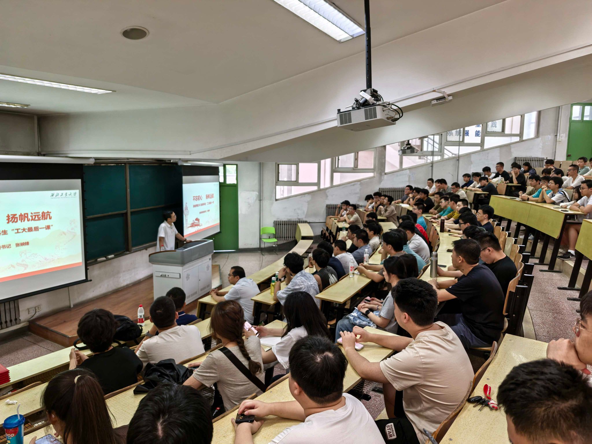 6 月 19 日下午,威尼斯432888cam 2021 级本科生毕业教育大会在友谊校区西馆 xb202 教室举行。威尼斯432888cam党委书记张映锋教授以 “不忘初心,扬帆起航” 为主题,为毕业生讲授 “工大最后一课”。学院党委副书记高峻,学生党务负责人曾文出席会议。